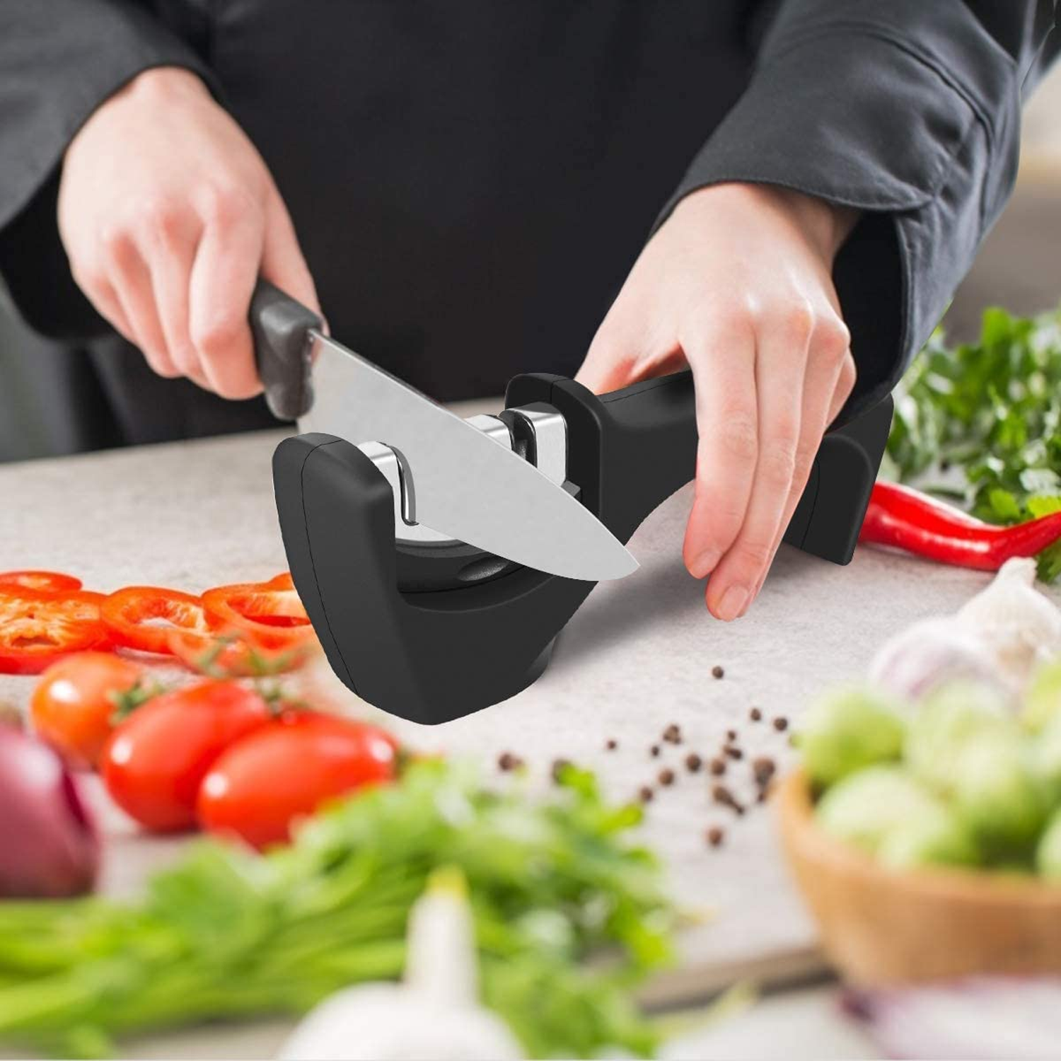 Easy to Use: Whether you’re right or left-handed, the ergonomic handle allows you to restore your cooking knives in a matter of seconds! Simply place the blade in each of the slots and gently pull the knife through a few times for fast, effective sharpening.
