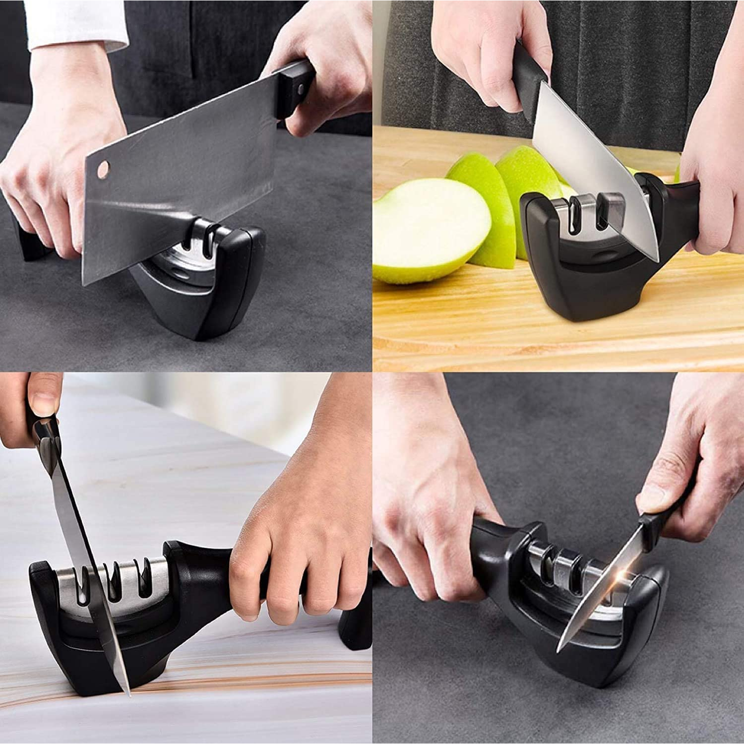 Premium Quality: With our professional knife sharpener kit, you don’t have to be a chef to cook like one! Crafted from solid ABS plastic, it’s strong, durable and designed to last a lifetime. Made with high quality materials, knives will work like new.